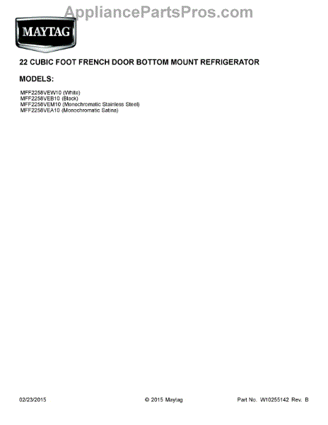 Parts for Maytag MFF2258VEM10: 01 - Cover Sheet Parts