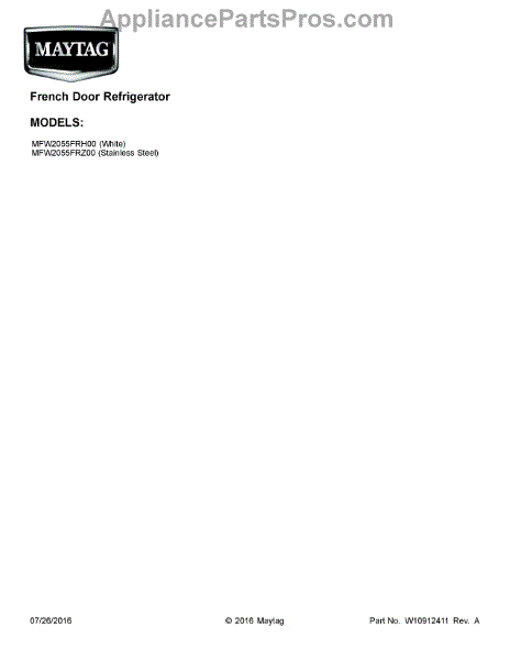 Parts for Maytag MFW2055FRH00: 01 - Cover Sheet Parts