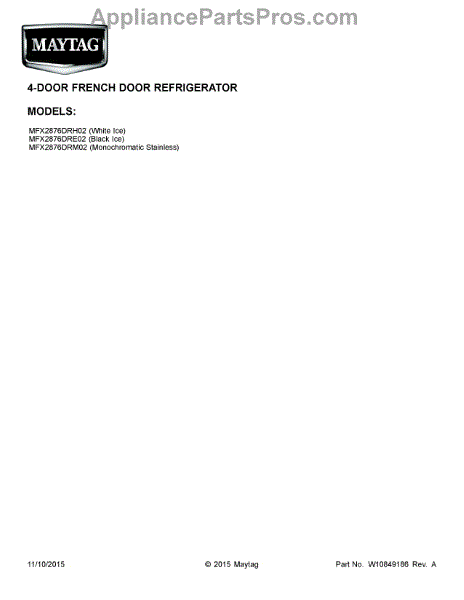 Parts for Maytag MFX2876DRM02: 01 - Cover Sheet Parts
