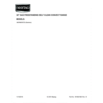Parts for Maytag MGR8650FZ0: 01 - Cover Sheet Parts