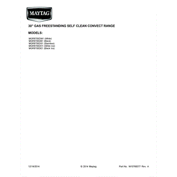 Parts for Maytag MGR8700DE1: 01 - Cover Sheet Parts