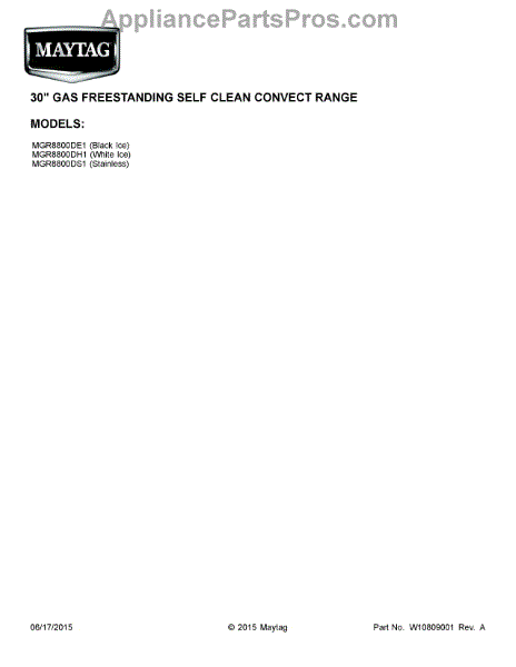 Parts for Maytag MGR8800DH1: 01 - Cover Sheet Parts