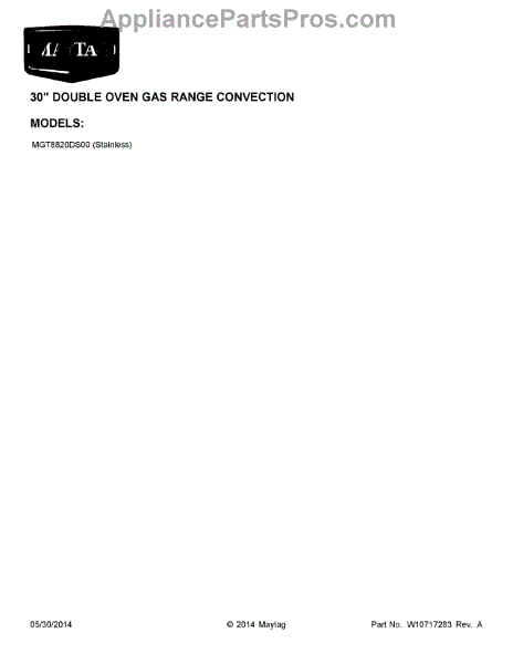 Parts for Maytag MGT8820DS00: 01 - Cover Sheet Parts