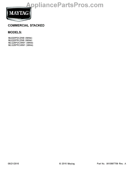 Parts for Maytag MLG20PRCWW1: 01 - Cover Sheet Parts