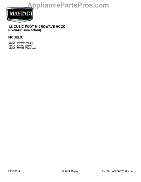 Parts for Maytag MMV6180WW2: 01 - Cover Sheet Parts