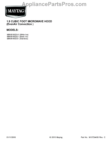Parts for Maytag MMV6190DS1: 01 - Cover Sheet Parts