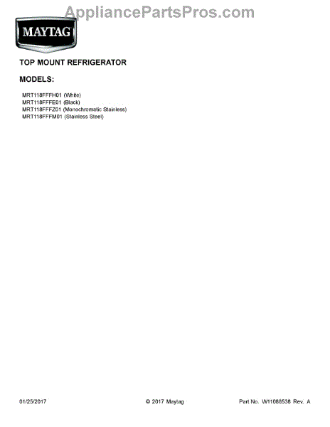 Parts for Maytag MRT118FFFM01: 01 - Cover Sheet Parts