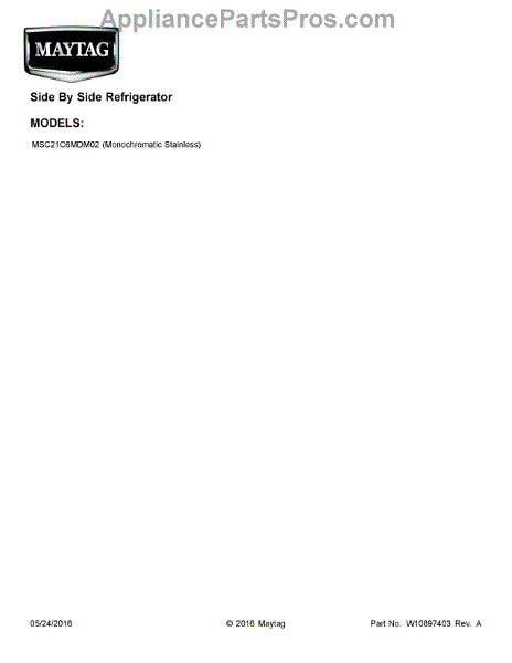 Parts for Maytag MSC21C6MDM02: 01 - Cover Sheet Parts