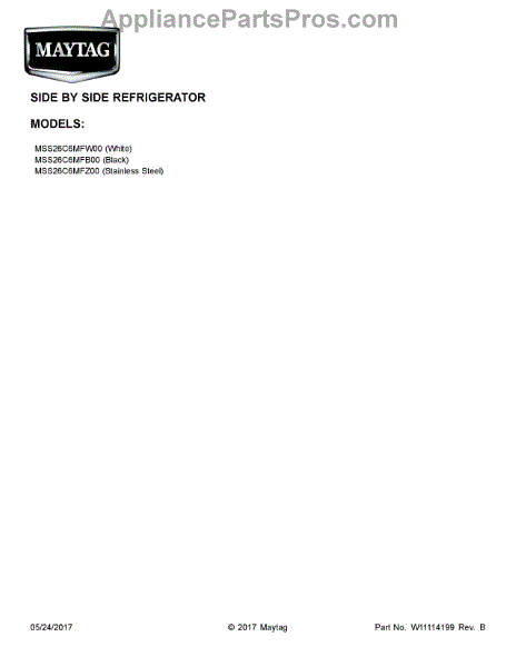 Parts for Maytag MSS26C6MFB00: 01 - Cover Sheet Parts