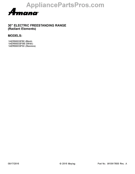 Parts for YAER6603SFS0