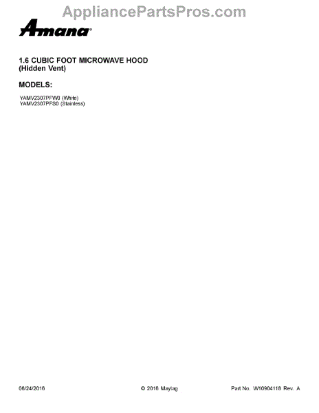 Parts for Maytag YAMV2307PFS0: 01 - Cover Sheet Parts