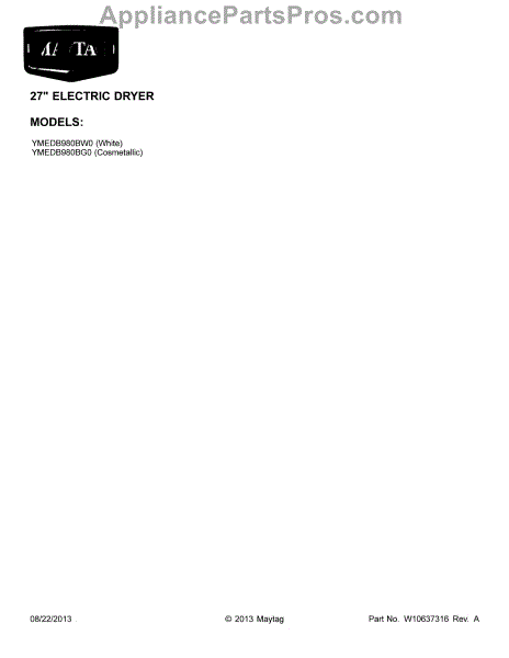 Parts for Maytag YMEDB980BG0: 01 - Cover Sheet Parts
