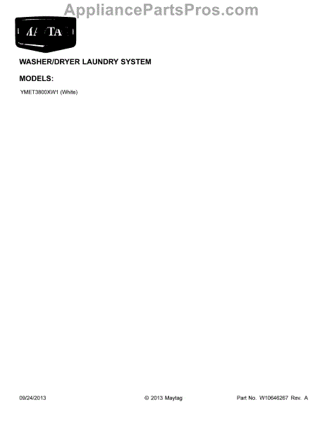 Parts for Maytag YMET3800XW1: 01 - Cover Sheet Parts