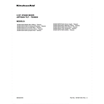 Parts for Whirlpool 3KSM150PSTCB0: 01 - Cover Sheet Parts