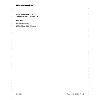 Parts for Whirlpool 4KSM7990WH0: 01 - Cover Sheet Parts
