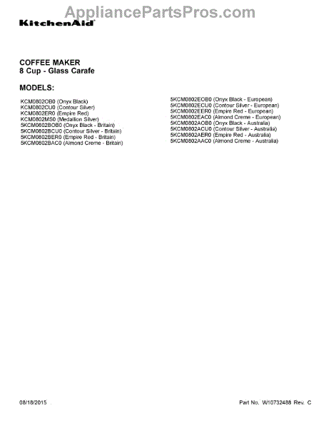Parts for Whirlpool 5KCM0802AER0: 01 - Cover Sheet Parts