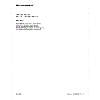Parts for Whirlpool 5KCM1204BOB0: 01 - Cover Sheet Parts