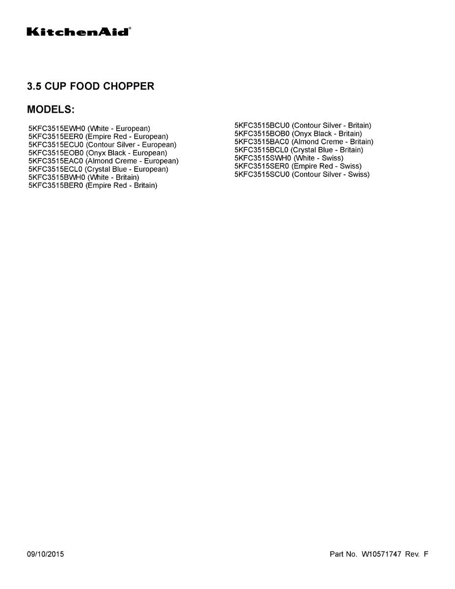 Parts for Whirlpool 5KFC3515EAC0: 01 - Cover Sheet Parts