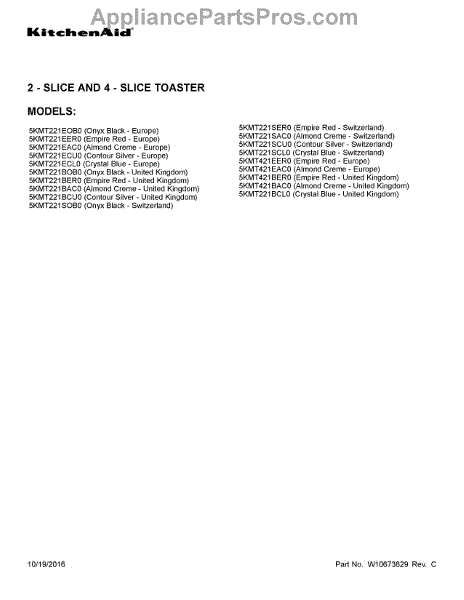 Whirlpool Toaster Parts