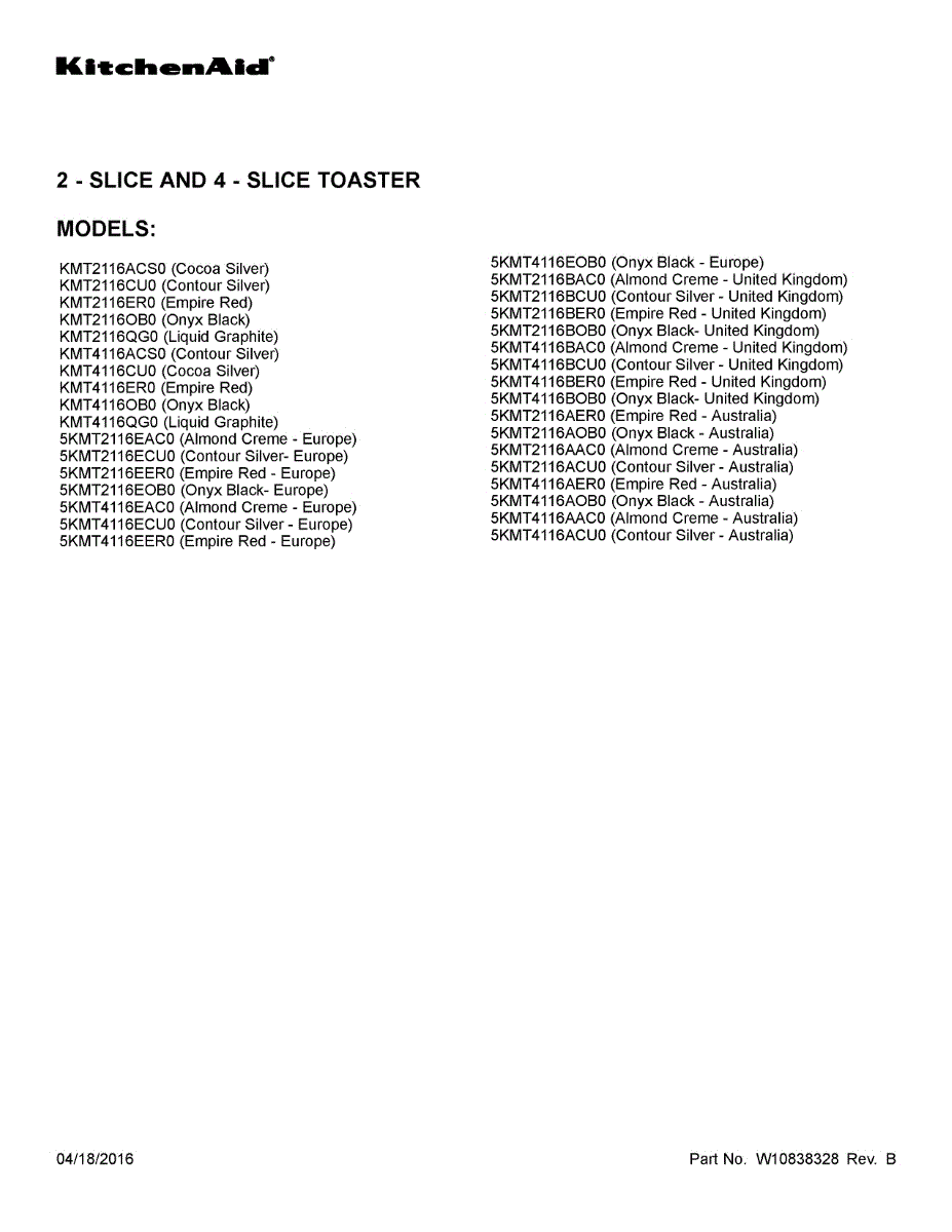 Whirlpool Toaster Parts