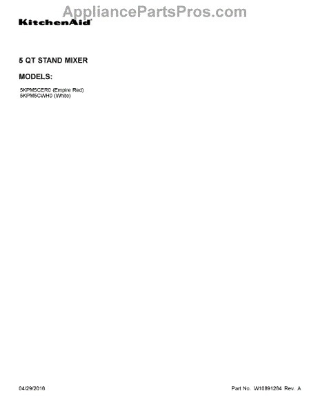 Parts for Whirlpool 5KPM5CER0: 01 - Cover Sheet Parts