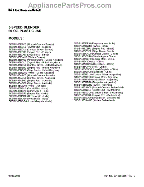Parts for Whirlpool 5KSB1585ACU0: 01 - Cover Sheet Parts