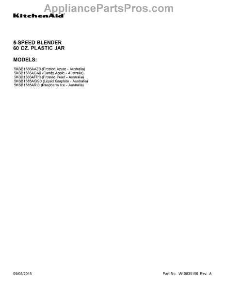 Parts for Whirlpool 5KSB1586AAZ0: 01 - Cover Sheet Parts