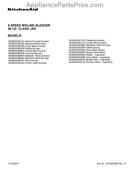 Parts for Whirlpool 5KSB5553RER0: 01 - Cover Sheet Parts