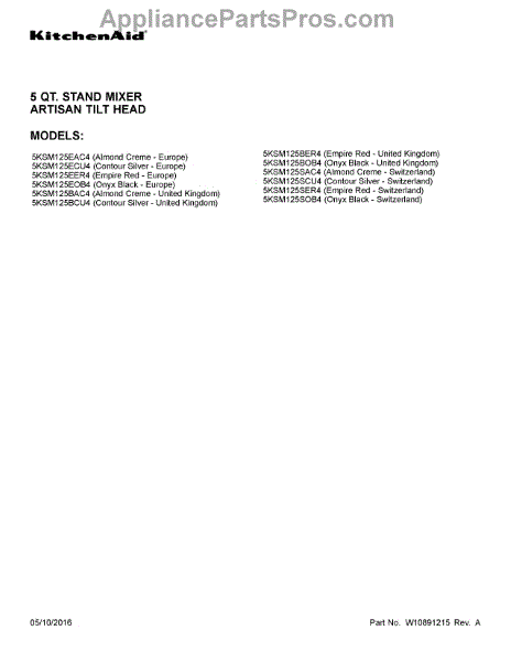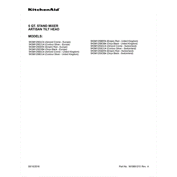 Parts for Whirlpool 5KSM125SCU4: 01 - Cover Sheet Parts
