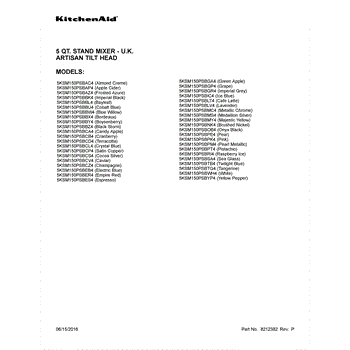 Parts for Whirlpool 5KSM150PSBCZ4: 01 - Cover Sheet Parts