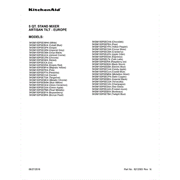 Parts for Whirlpool 5KSM150PSESA4: 01 - Cover Sheet Parts