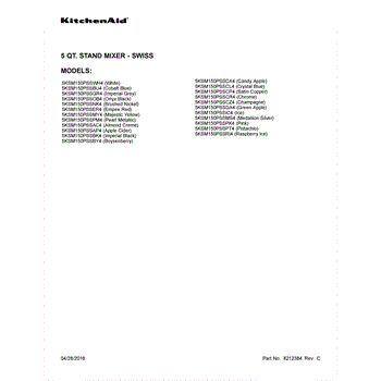 Parts for Whirlpool 5KSM150PSSCZ4: 01 - Cover Sheet Parts