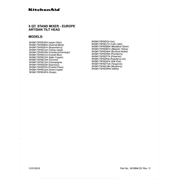 Parts for Whirlpool 5KSM175PSETG4: 01 - Cover Sheet Parts