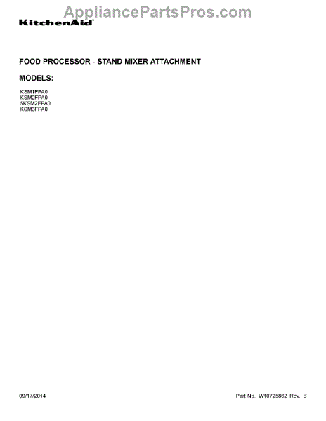 Parts for Whirlpool 5KSM2FPA0: 01 - Cover Sheet Parts