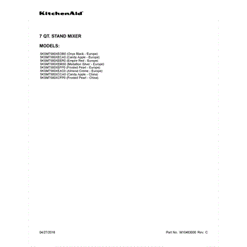 Parts for Whirlpool 5KSM7580XEAC0: 01 - Cover Sheet Parts