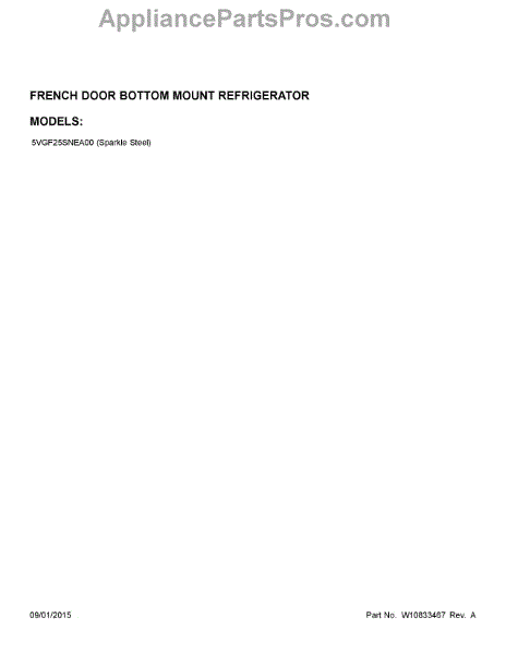 Parts for Whirlpool 5VGF25SNEA00: 01 - Cover Sheet Parts