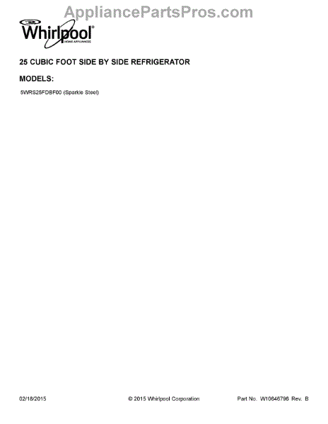 Parts for Whirlpool 5WRS25FDBF00: 01 - Cover Sheet Parts