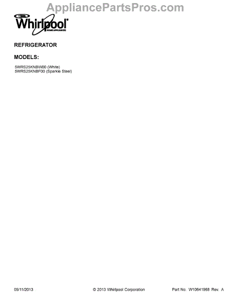 Parts for Whirlpool 5WRS25KNBW00: 01 - Cover Sheet Parts