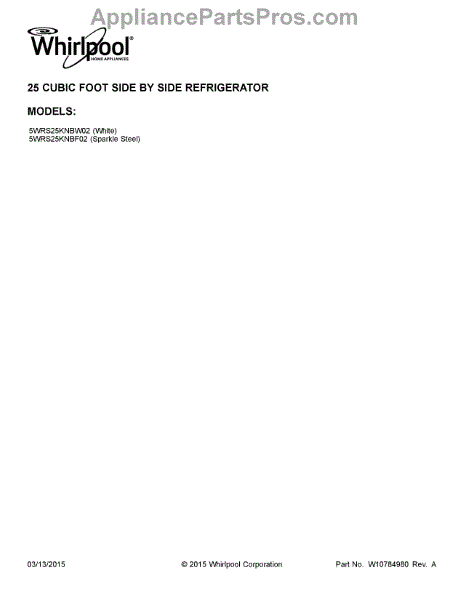 Parts for Whirlpool 5WRS25KNBW02: 01 - Cover Sheet Parts