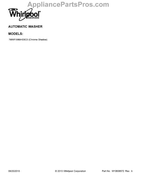 Parts for Whirlpool 7MWFW86HEBC0: 01 - Cover Sheet Parts