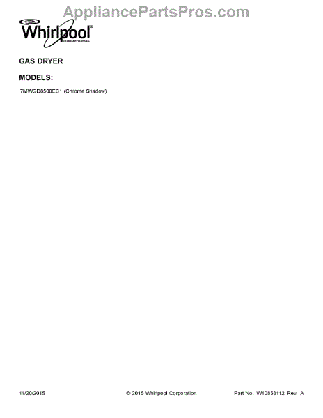 Parts for Whirlpool 7MWGD8500EC1: 01 - Cover Sheet Parts