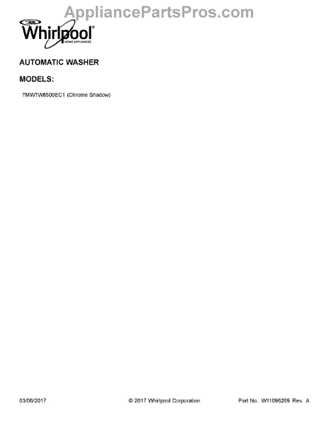Parts for Whirlpool 7MWTW8500EC1: 01 - Cover Sheet Parts