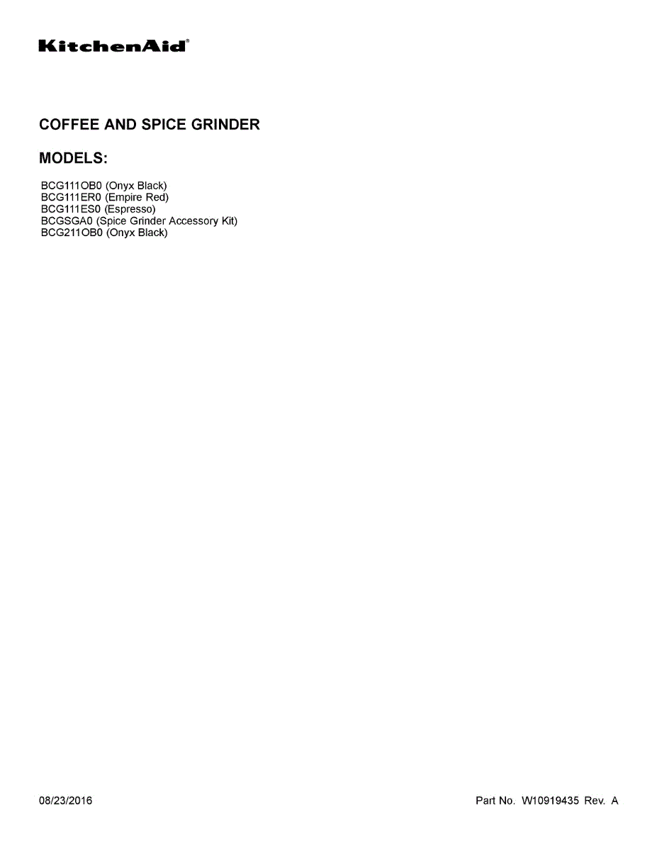 Parts for Whirlpool BCG211OB0: 01 - Cover Sheet Parts