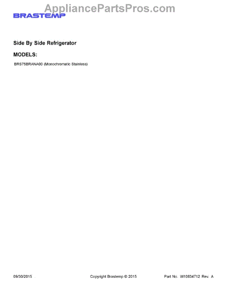 Parts for Whirlpool BRS75BRANA00: 01 - Cover Sheet Parts