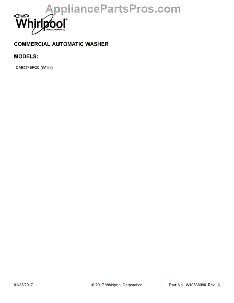 Parts for Whirlpool CAE2745FQ0: 01 - Cover Sheet Parts