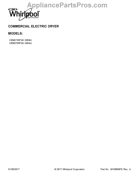 Parts for Whirlpool CEM2765FQ0: 01 - Cover Sheet Parts
