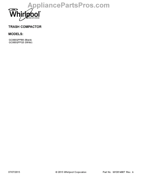 Parts for Whirlpool GC900QPPB5: 01 - Cover Sheet Parts