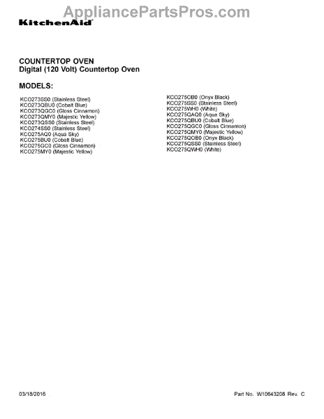 Parts for Whirlpool KCO275QGC0: 01 - Cover Sheet Parts