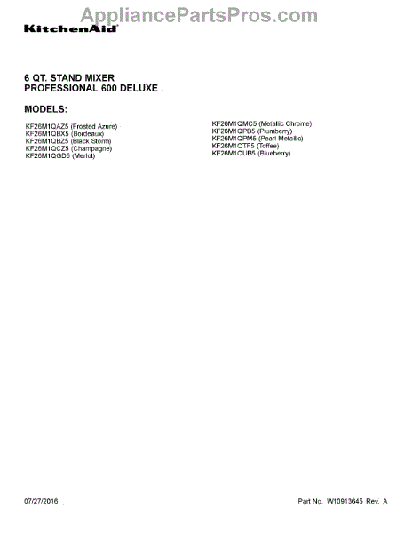 Whirlpool Mixer Parts