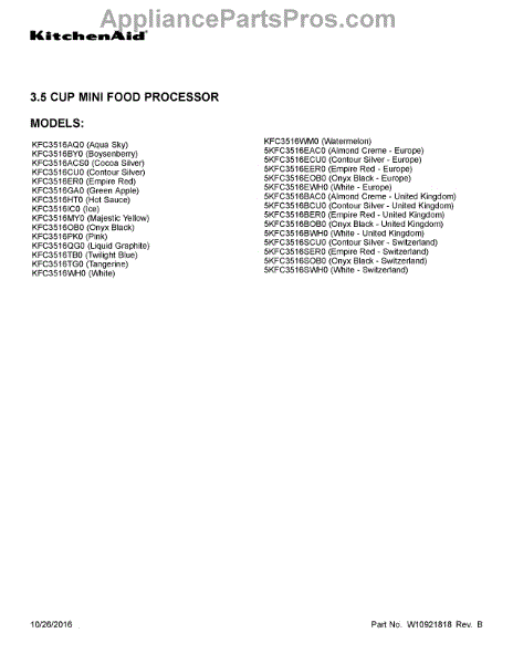 Whirlpool Food Processor Parts
